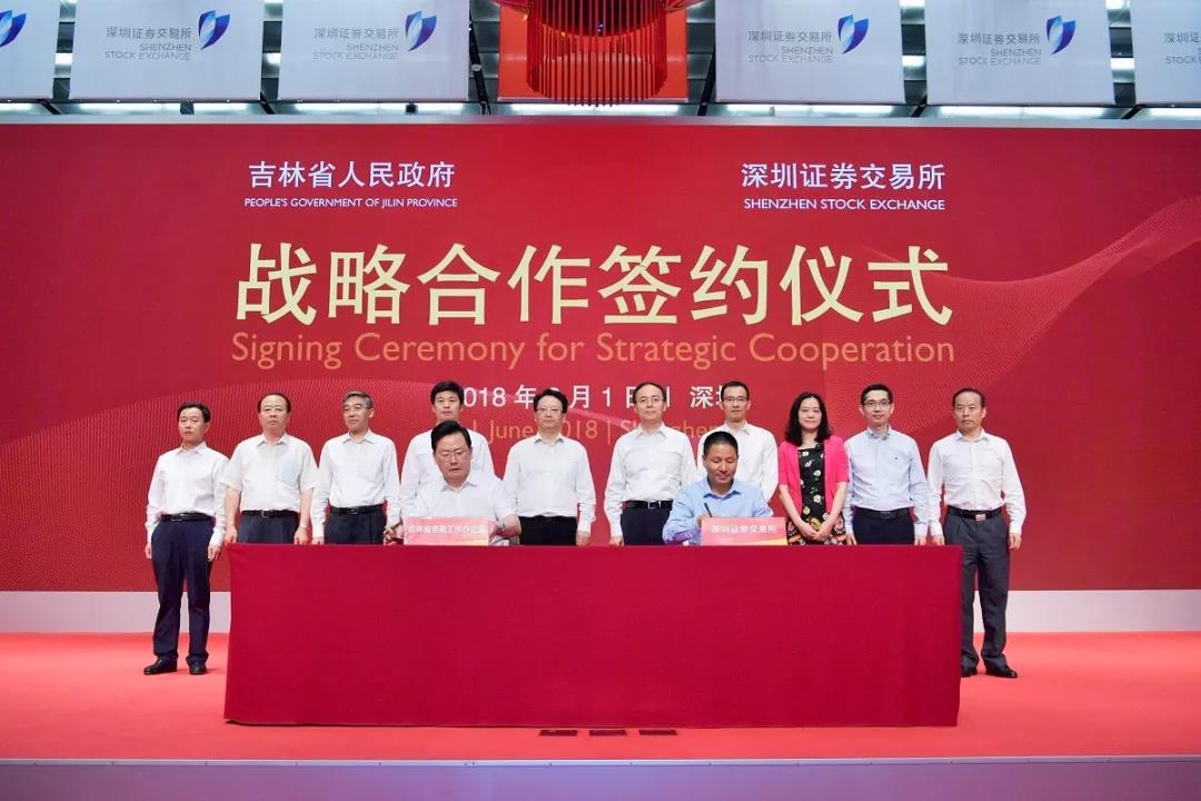 2018年6月1日,深交所與吉林省在深圳共同舉辦戰(zhàn)略合作簽約儀式。這是深交所強(qiáng)化與地方政府合作,發(fā)揮資本市場平臺(tái)作用,服務(wù)地方經(jīng)濟(jì)轉(zhuǎn)型升級(jí)、促進(jìn)區(qū)域協(xié)調(diào)發(fā)展的又一重要成果。吉林省省長景俊海、副省長金育輝、長春市市長劉長龍、省政府秘書長彭永林、深交所理事長吳利軍等出席簽約儀式,吉林省金融辦主任胡斌與深交所總經(jīng)理王建軍共同簽署協(xié)議,吉林省、深圳市、深交所有關(guān)領(lǐng)導(dǎo)參加相關(guān)活動(dòng)。